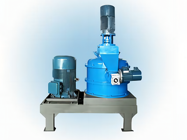 物料由加料系統(tǒng)均勻的送入粉碎室,受到高速旋轉(zhuǎn)的粉碎盤的強烈沖擊,同時受到離心力的作用,與粉碎齒圈發(fā)生碰撞,受到剪切、摩擦、碰撞等多種綜合力的作用,使物料粉碎,被粉碎的物料隨氣流運動到分級區(qū),通過變頻調(diào)節(jié)的分級輪,對粗細物料進行分離,符合細度要求的產(chǎn)品隨氣流進入旋風收集器和除塵器收集,粗細料返回分級區(qū)二級粉碎。