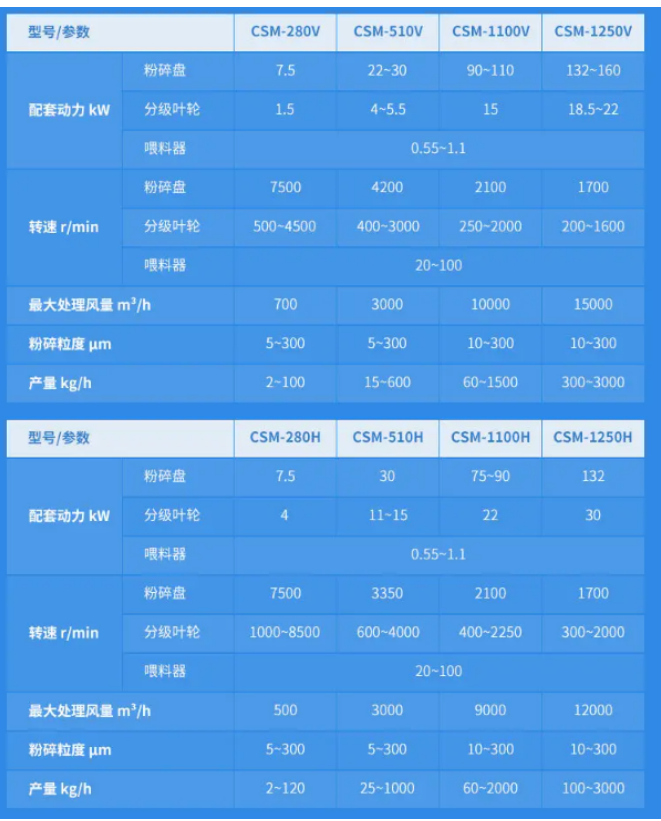 1、粉碎粒度范圍D50:1.5-45微米;粉碎分級一體化,通過調(diào)整分級輪獲得理想的產(chǎn)品顆粒,分級轉(zhuǎn)子可水平或垂直安裝;