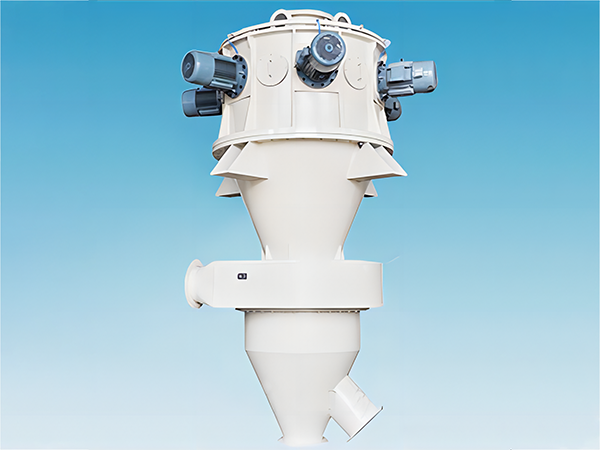 【特點(diǎn)】:物料在風(fēng)機(jī)抽力作用下由分級(jí)機(jī)下端入料口隨氣流上升至分級(jí)區(qū),在高速旋轉(zhuǎn)的分級(jí)渦輪產(chǎn)生的強(qiáng)大離心力作用下,使物料分離,符合粒徑要求的細(xì)顆粒通過(guò)分級(jí)輪葉片間隙進(jìn)入旋風(fēng)分離器或除塵器收集,粗顆粒下降至卸料口排出。適用于干法微米級(jí)產(chǎn)品的精細(xì)分級(jí),可分級(jí)球狀、片狀、針狀顆粒,也可對(duì)不同密度的顆粒分級(jí);轉(zhuǎn)子速度可以變頻調(diào)速,靈活調(diào)整粒度分布。