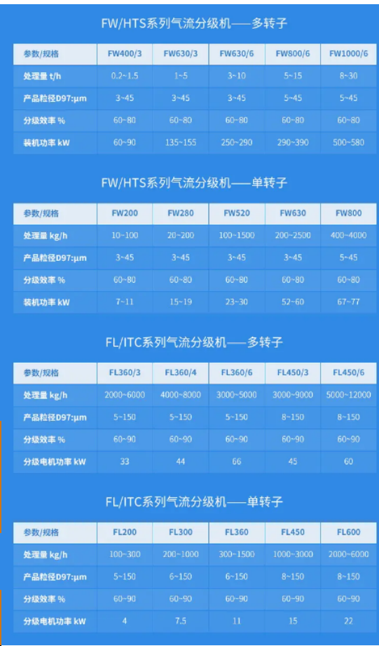 2、分級(jí)產(chǎn)品的粒度可達(dá)D97:2~45微米,產(chǎn)品粒度無(wú)級(jí)可調(diào),品種更換其方便。