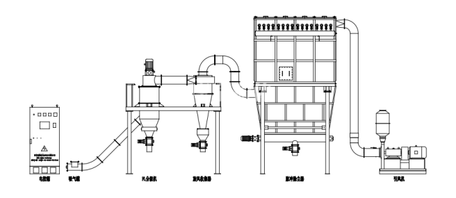 5、可與球磨機(jī)、振動(dòng)磨、雷蒙磨等粉磨設(shè)備串聯(lián)使用,組成閉路循環(huán)。