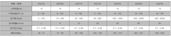 1、適合于莫氏硬度7以下的各種物料的干法粉碎,尤其適合于高硬度、高純度和高附加值物料的粉碎;